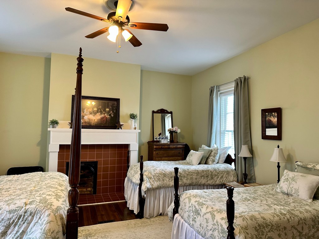 Our room was a charming three bed, adorned with a fireplace and antique furnishings. The detailed antique style comforters delicately matched with the color of the walls and the bathroom amply supplied with toiletries, Turkish towels and no detail left untouched. This charming B&B provided the perfect weekend with my girlfriends. Conversation and laughter could be heard throughout the walls and the comfort of friendship left my heart full.
